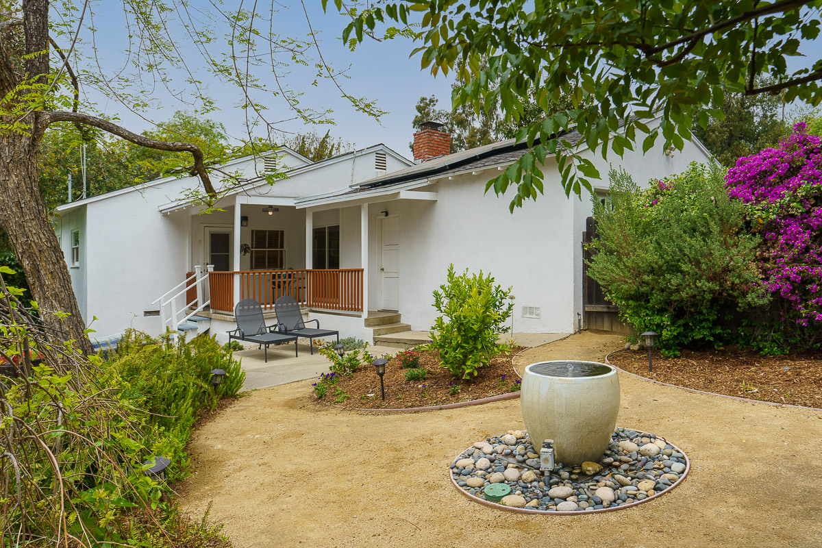 The retreat-like yard has been professionally landscaped and features numerous seating areas, shaded patios, a central water feature as well as a raised back porch that is ideal for dinner al fresco with friends and family or simply to use as a quiet spot for your morning coffee. This is a truly fabulous property that offers the best of the Southern California lifestyle. Don’t miss this hidden Altadena gem!