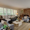 Welcome to this picture-perfect mid-century ranch style home in a sought-after neighborhood, that exudes character and charm throughout. The house, on a quiet cul-de-sac has exceptional curb appeal with its gracious, wide front porch and elegant door with a custom “checkpoint” glass center panel. You step into the house via a light-filled foyer that leads to the living room, wrapped in windows, that is anchored by a stately fireplace made of stacked brick and natural stone. From there you enter the cheerfully remodeled kitchen that features Marmoleum flooring, custom glass fronted cabinetry, a cozy dining area and stainless steel appliances. Other highlights include hardwood floors, crown molding, ample storage and serene paint colors.